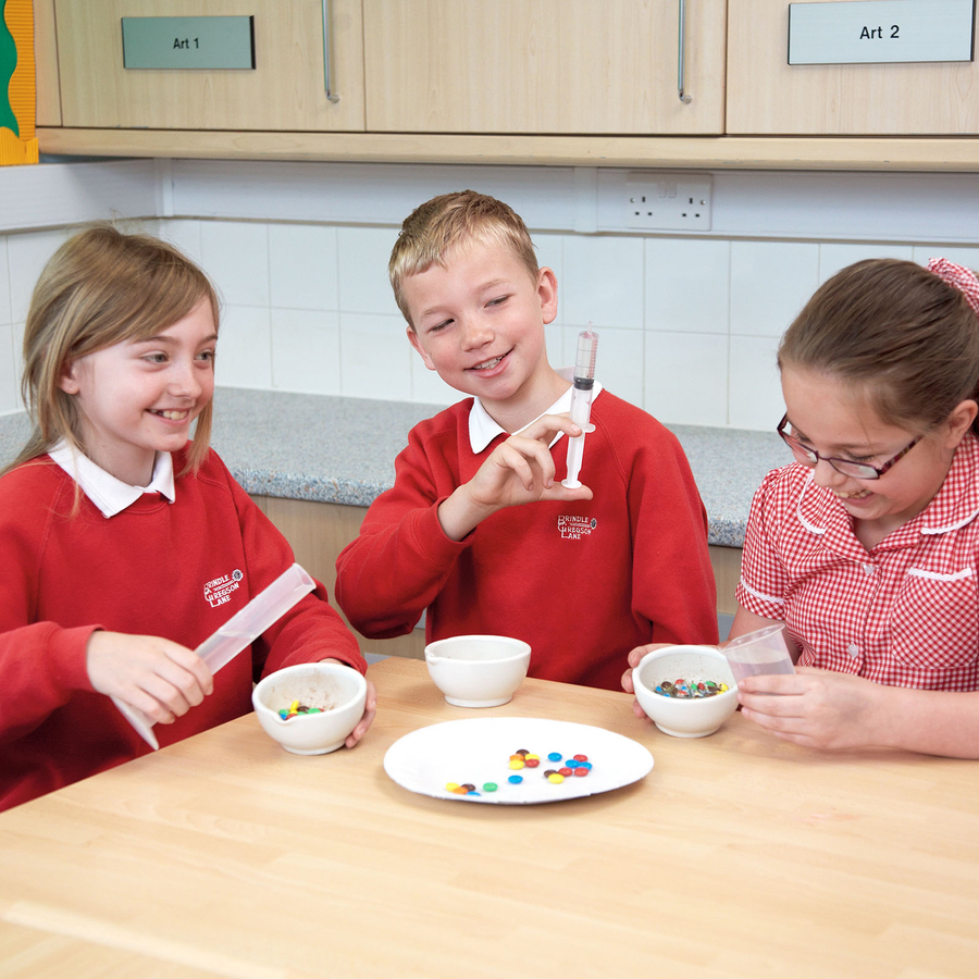 These measuring syringes support the practical aspects of the science curriculum, focusing on volume measurement.