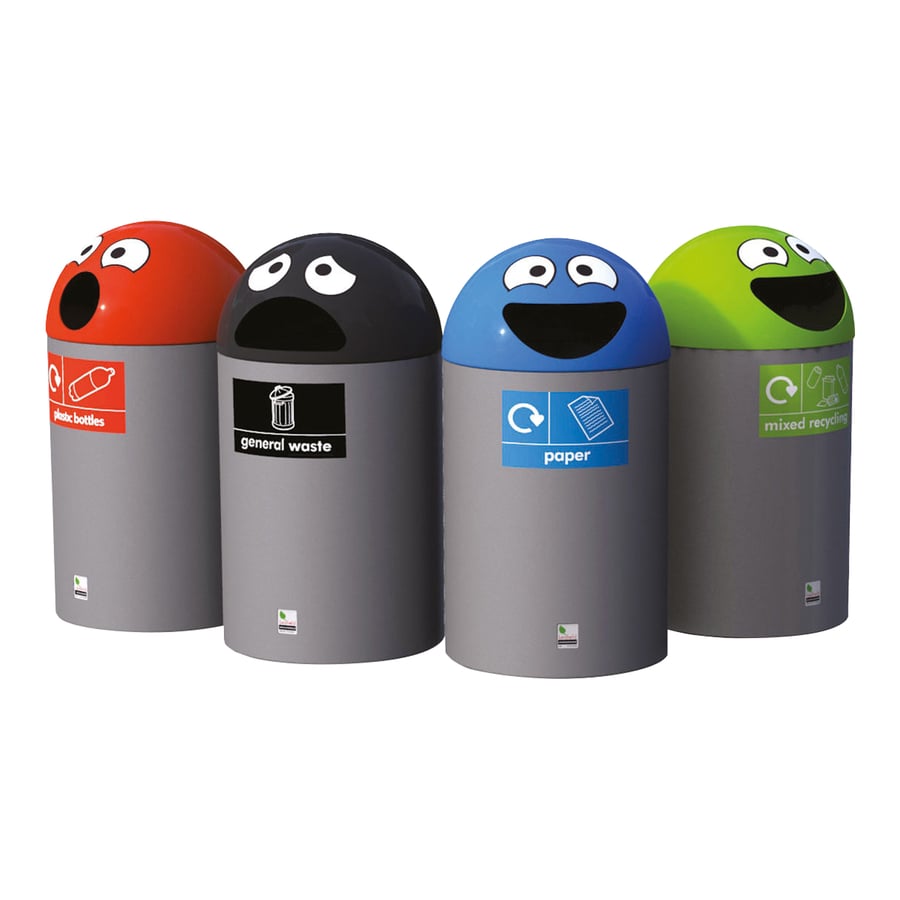 These brightly coloured recycling bins are designed to encourage children to recycle and tidy up.