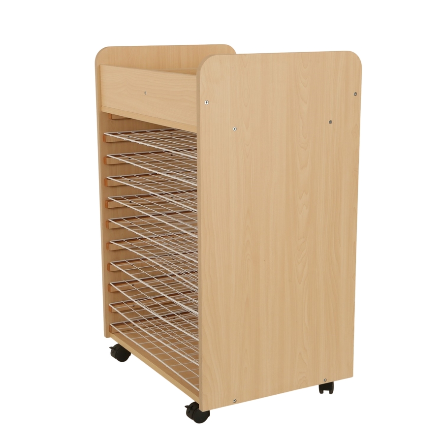 A versatile drying rack featuring 10 removeable metal racks, each spacious enough to accommodate A3-sized paintings.