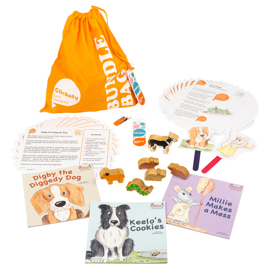 Includes 3 x books, key character wooden figures, USB with MP3 audio files, easy to print PDFs with guidance, lolly stick puppets, colouring sheets and activities, supplied in a cotton drawstring bag. Contents may vary