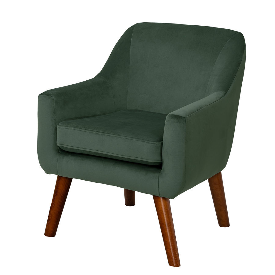 • The Emily chair offers style in emerald green or grey, with comfort and easy upkeep, perfect for home corners.