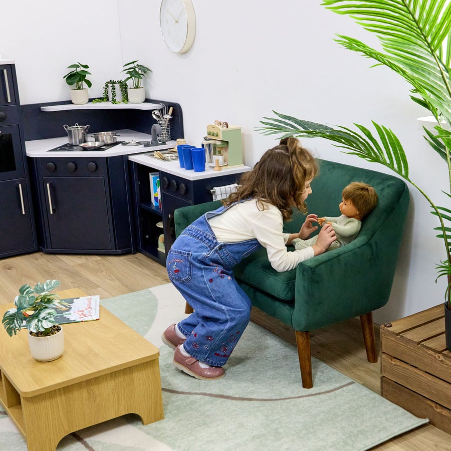 Providing a cosy area, the sofa encourages sharing and group activities. It supports a cooperative learning environment with its capacity for one to two children.