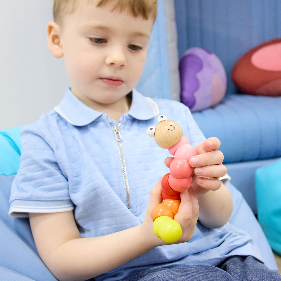 Designed to assist with focus, this fidget aid offers jointed flexibility, allowing children to twist and turn it into various positions.