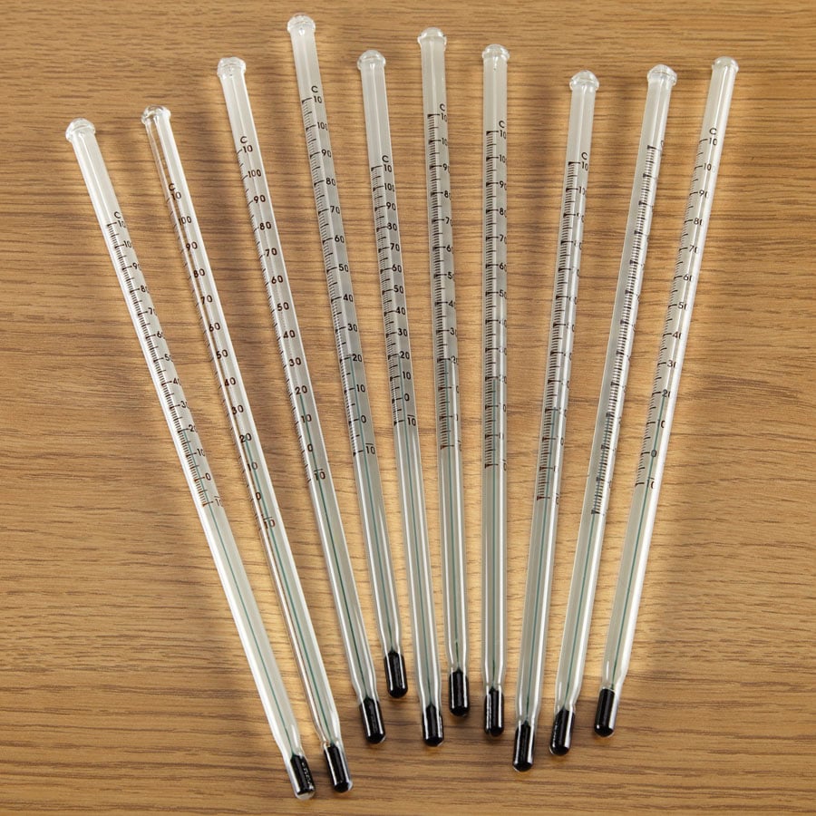 These thermometers measure temperatures from -10°C to 110°C and ensure accurate measurements for scientific experiments and classroom activities.