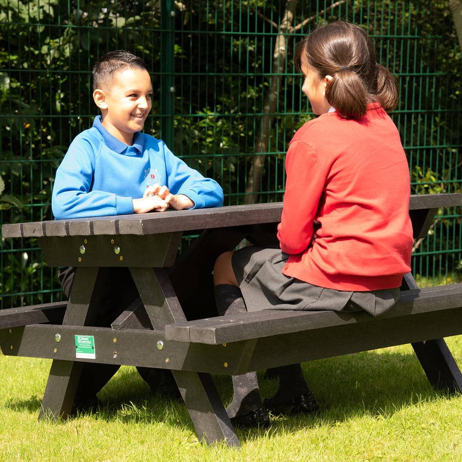 • This junior picnic bench supports outdoor learning by promoting collaborative learning and social interaction during lessons or break times. It offers a practical solution for outdoor classroom activities enhancing the learning experience outside the traditional classroom.