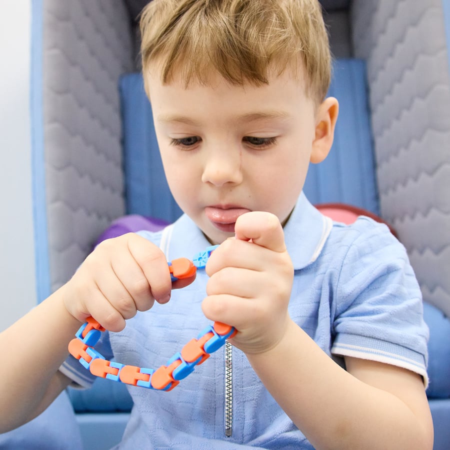 This fidget resource meets the needs for safety and durability during use, as it is constructed from durable plastic.