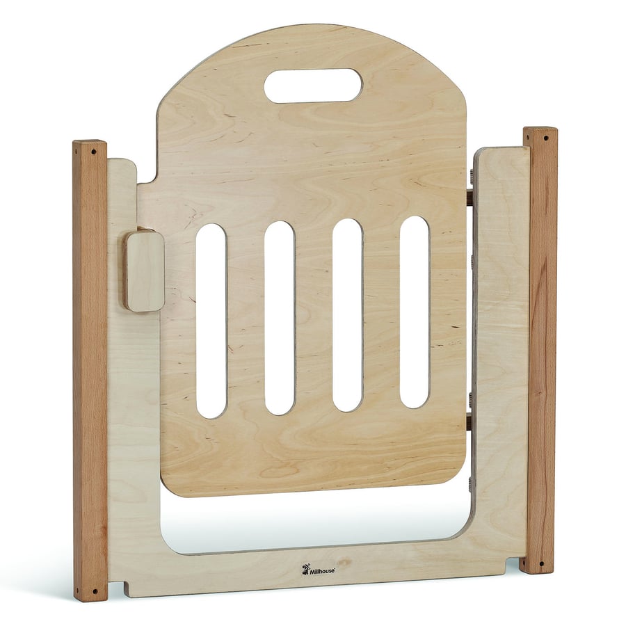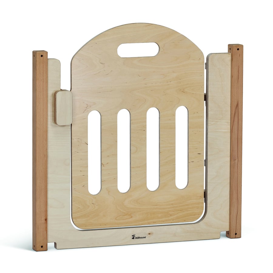 For secure access to enclosures, the gate panel must be lifted to open. This design ensures enhanced safety while allowing easy entry for teachers.
