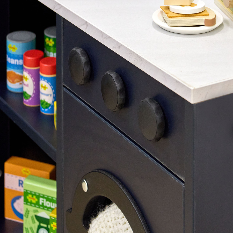 • An invaluable addition to any educational environment, this kitchen promotes interaction, cooperation, and imaginative exploration. It aids in social development by reinforcing turn-taking and collaborative storytelling, while also enhancing creative thinking in young learners.