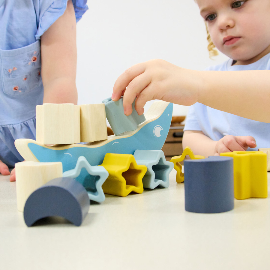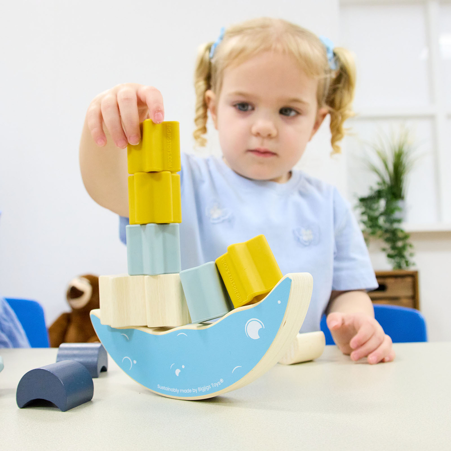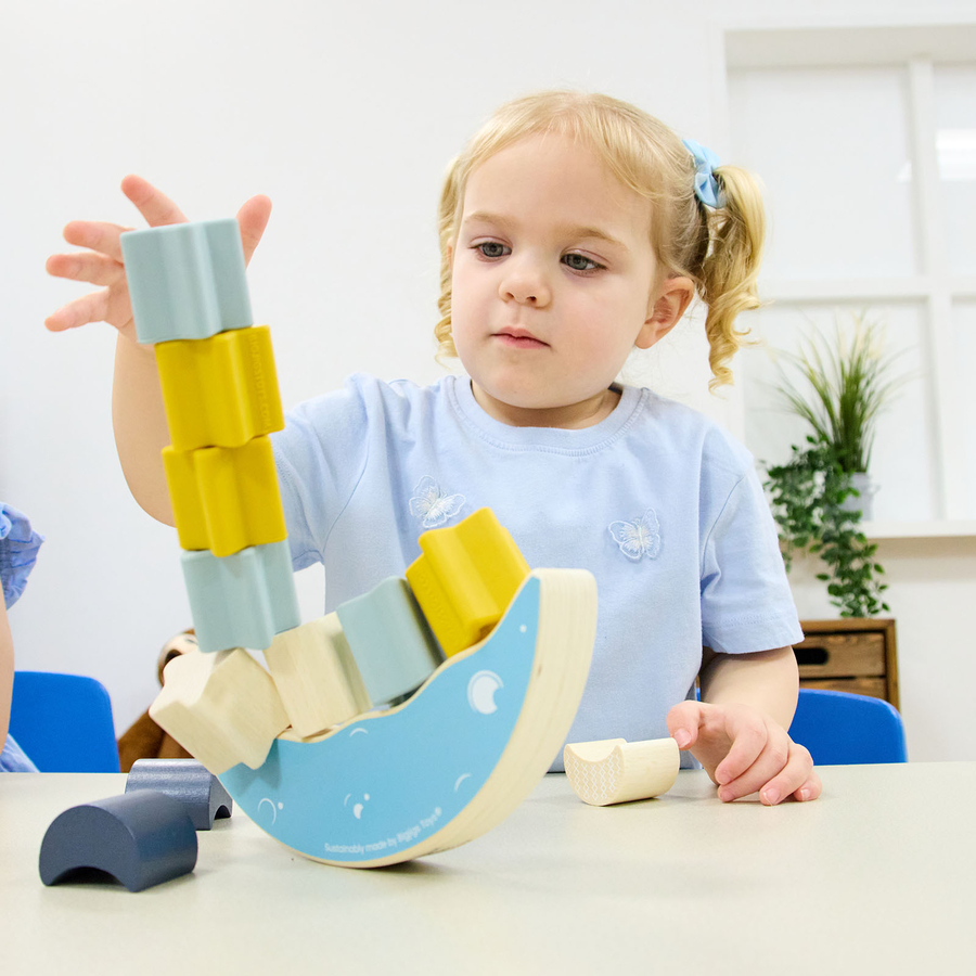 This game enhances teamwork and social skills, teaching children collaboration through balancing blocks.