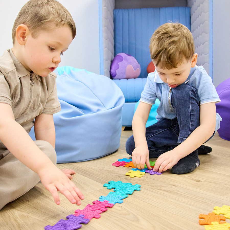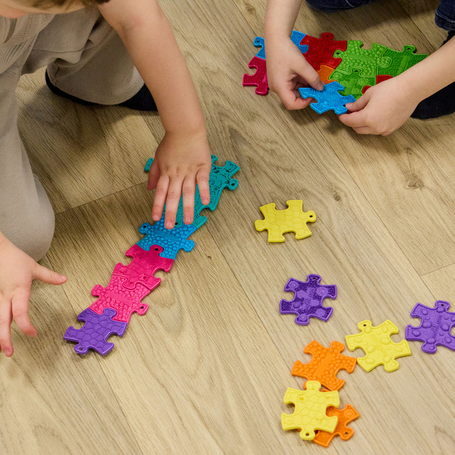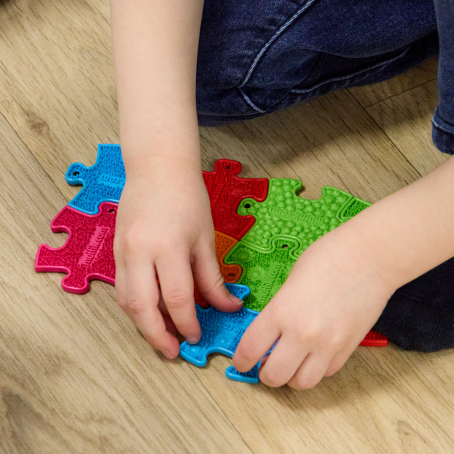 The different textures and colours stimulate sensory feedback, helping children process and explore different surfaces through touch and sight.