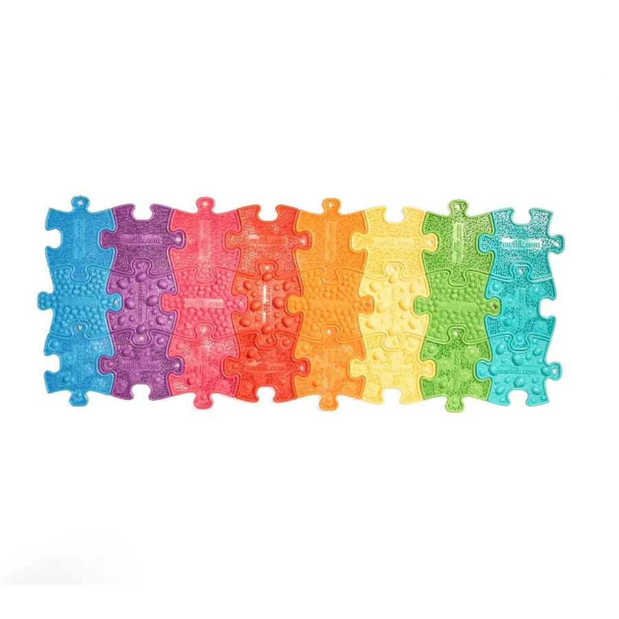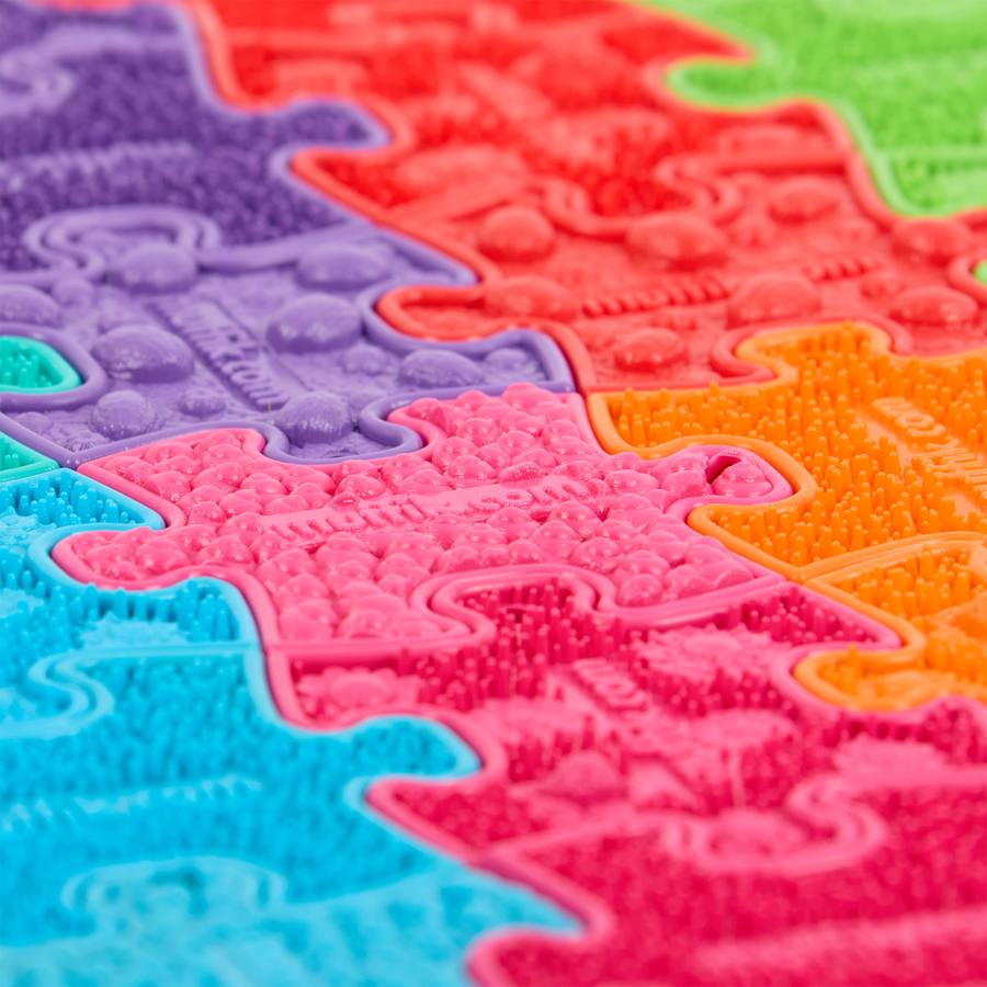 The different textures and colours stimulate sensory feedback, helping children process and explore different surfaces through touch and sight.