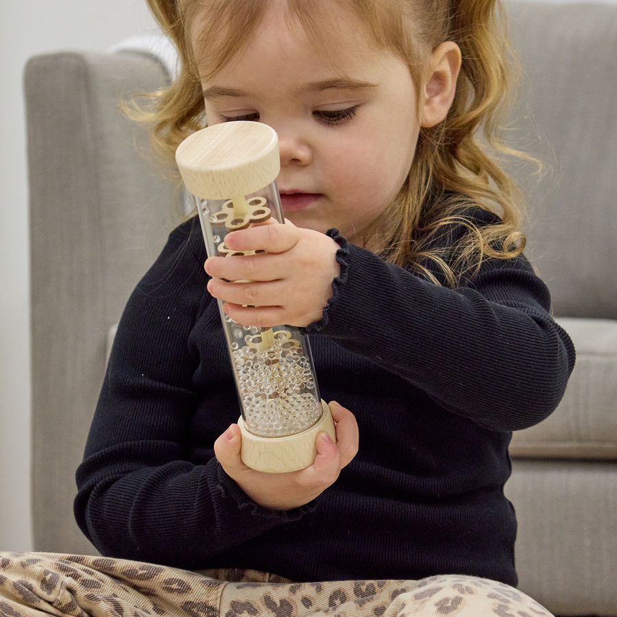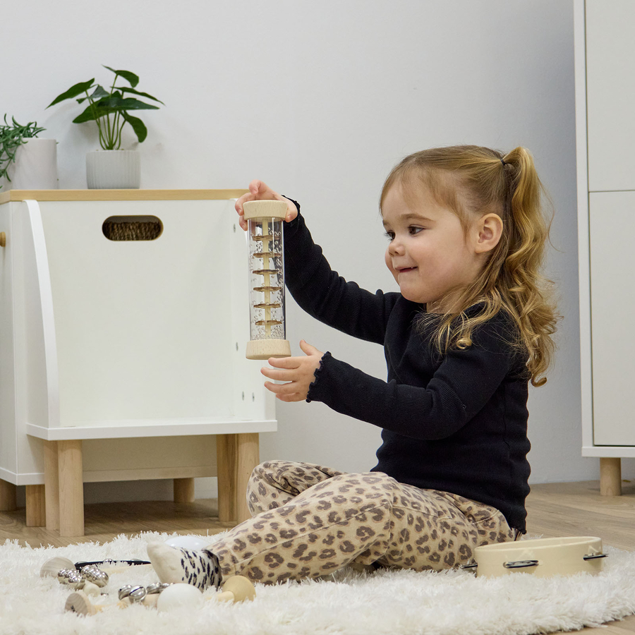 A set of natural wooden instruments for babies aged 12 months and above, designed to engage little ones' senses and encourage early musical exploration.