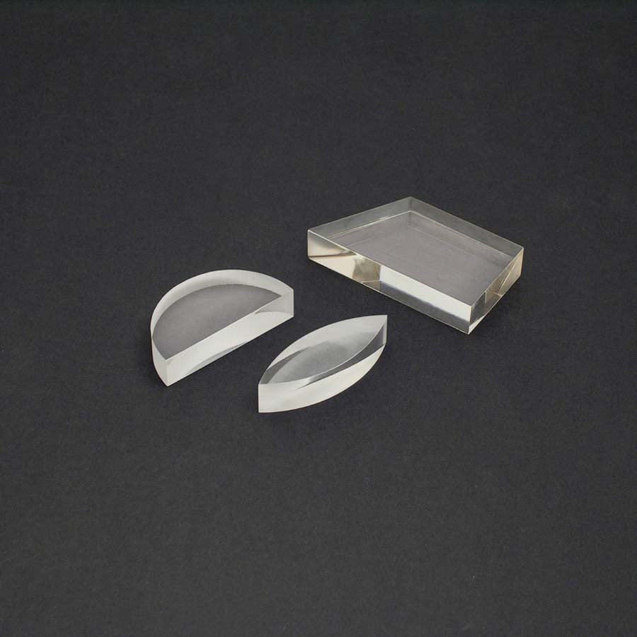 This trapezoid lens effectively demonstrates light properties with various geometric shapes.