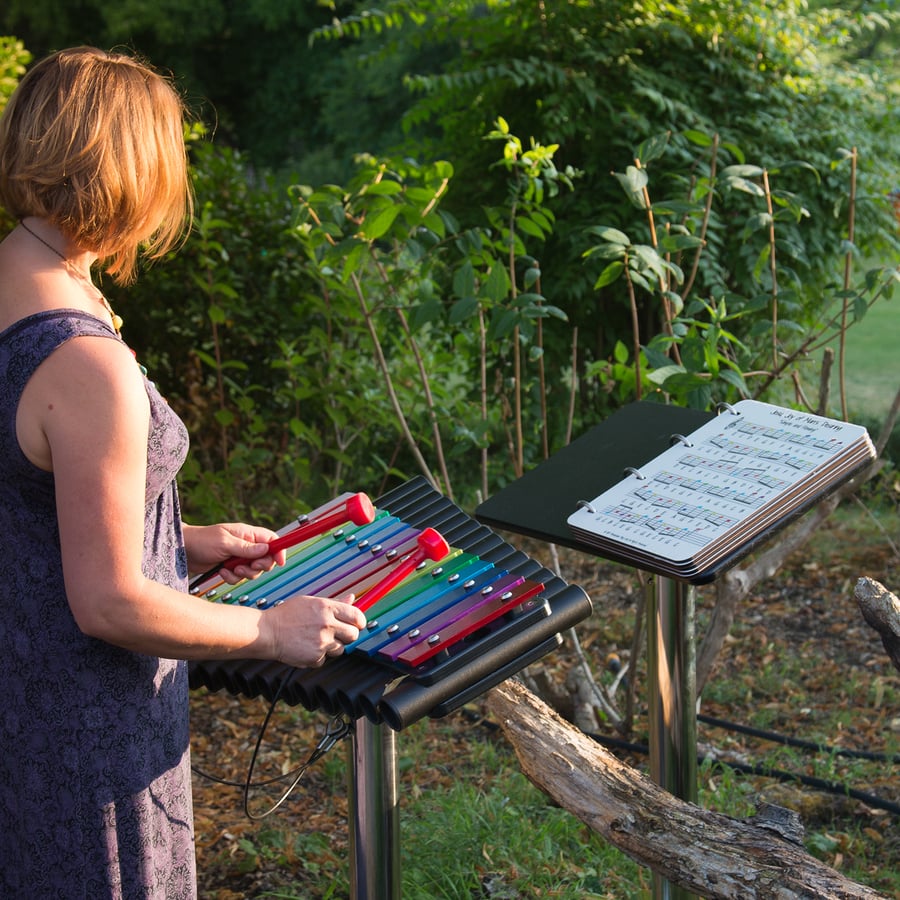 Featuring rainbow anodized aluminium notes that correspond with the coloured notes on the music sheets, making it easier to play songs.