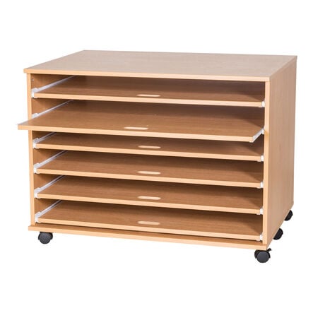6 sliding shelves act as paper trays, allowing for easy storage of craft materials and art work.