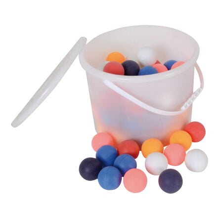 A set of 72 table tennis balls with a storage bucket, ideal for skill development and practice.