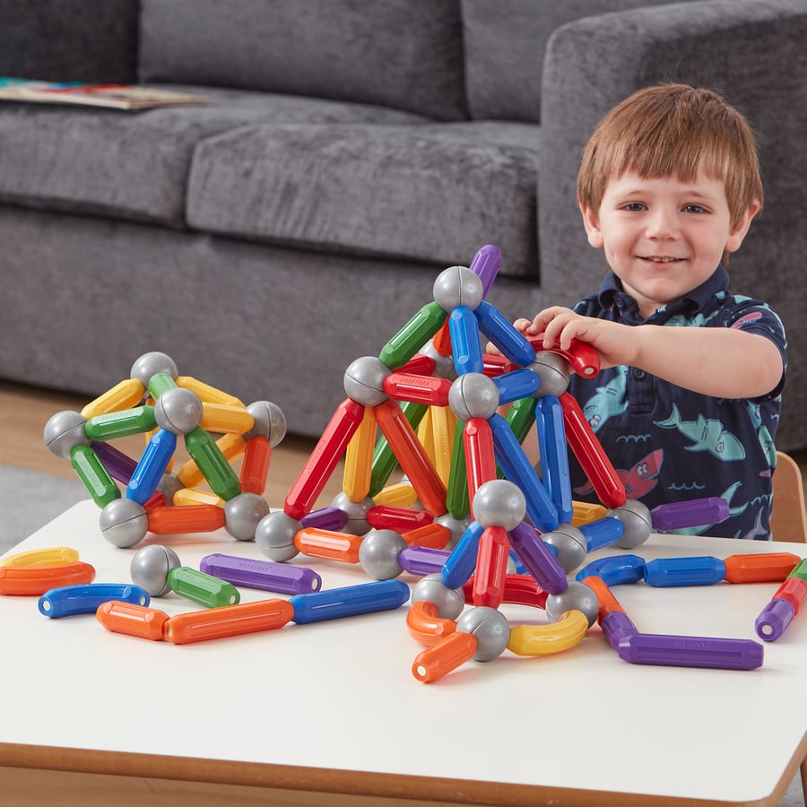 Children can learn about magnetic properties through hands-on exploration, connecting cold-coloured bars with warm-coloured bars and observing repulsion.