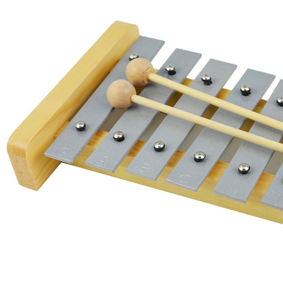 The glockenspiel's note range from G to E allows for versatile musical expression, catering to various teaching methods and student exploration.
