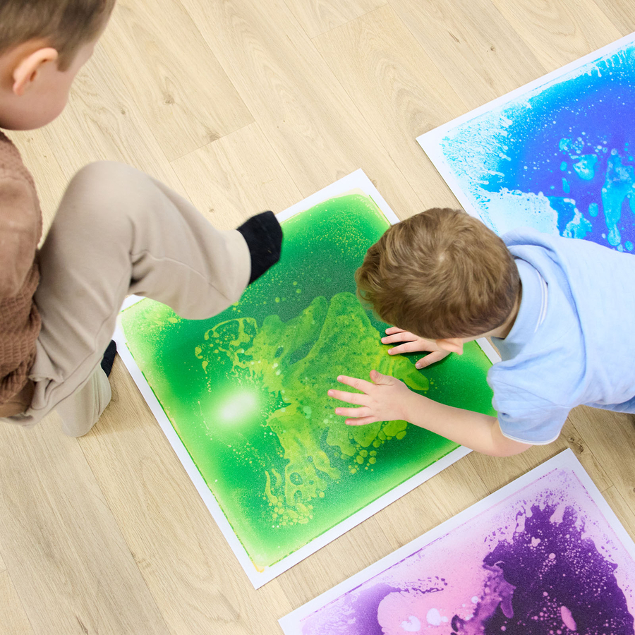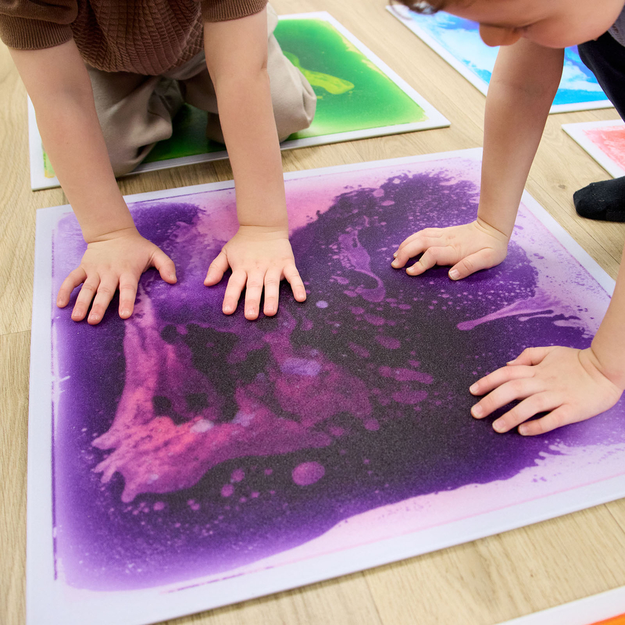 • Measuring W50 x L50cm, with a cushioned, non-slip backing, the liquid floor tiles ensure safety across learning environments. They can be utilised on both floors and table tops, enhancing flexibility in creating engaging sensory and motor skills development activities.