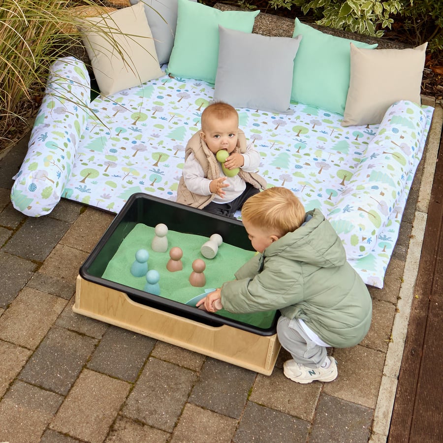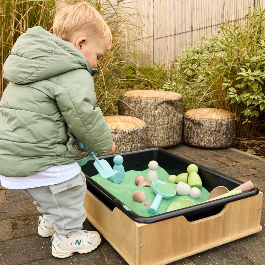 Providing diverse surfaces and materials, the tub stimulates all senses. This sensory engagement is crucial for early years' physical development and cognitive growth.