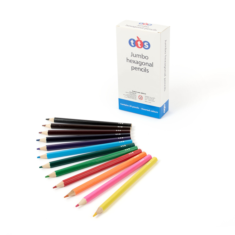 Brightly coloured jumbo hexagonal shaped colouring pencils, easy to shade, blend and mark make.