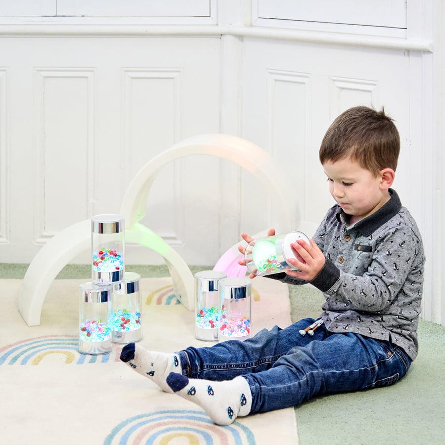 • Ideal for group activities, these rollers support cooperative play and help develop social skills. Each roller can be used in treasure baskets or as mesmerising visual aids in sensory play environments such as sensory rooms, assisting children in understanding spatial awareness and sensory integration.