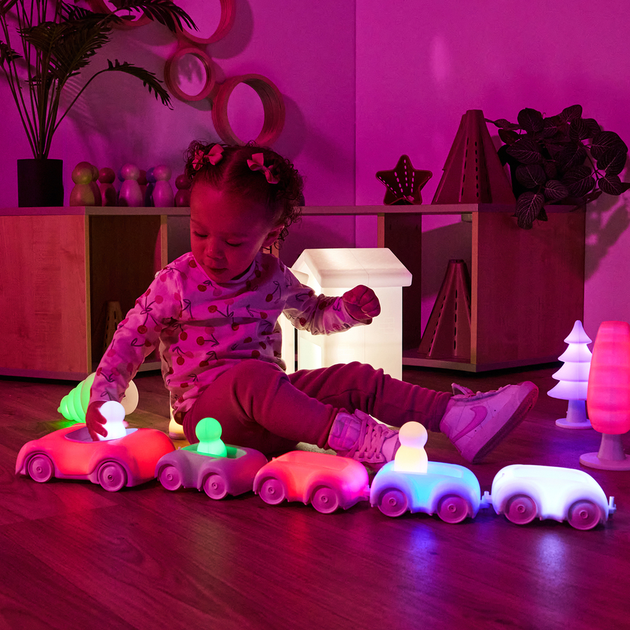• This bundle brings together the Remote Control Glow Vehicle and Glow People, offering a simple yet powerful combination for imaginative play. Children can seat their characters inside the vehicle and use the remote to steer them through small world adventures. Play supports directional awareness, forwards, backwards, left, right, cause and effect understanding, and imaginative storytelling. It's an engaging introduction to glow technology.