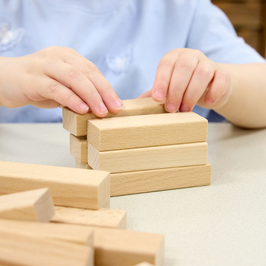 Constructed from durable wood, these bricks aid in building strength in children's fingers and hands, supporting their fine motor skills development.