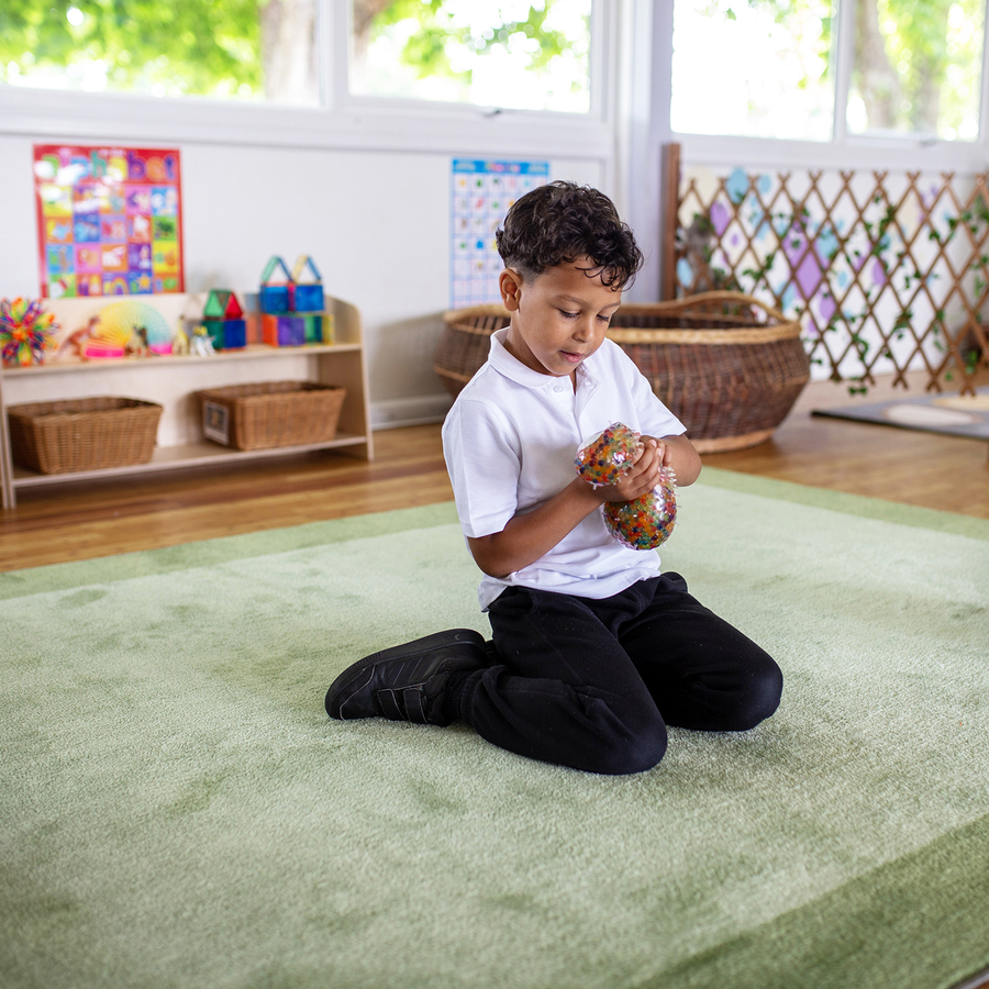 The gentle, nature-inspired colours of the carpet help create a calming environment. This promotes a sense of wellbeing, aiding children in focusing and relaxing during learning activities.