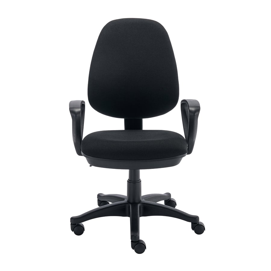 A comfortable 2-lever office chair available with height adjustable arms, fixed arms or without arms.