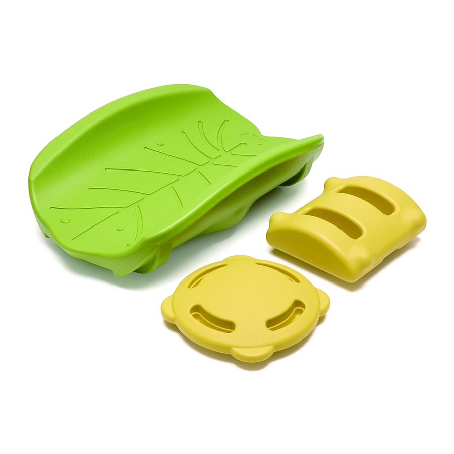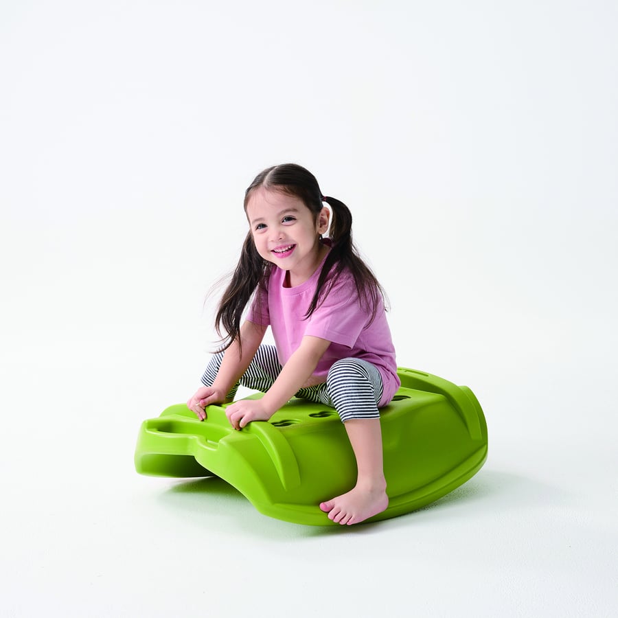 The Weplay rocking leaf boat features a design that enhances muscle and balance development. Its rocking and rotating bases offer diverse activities to build essential physical skills.
