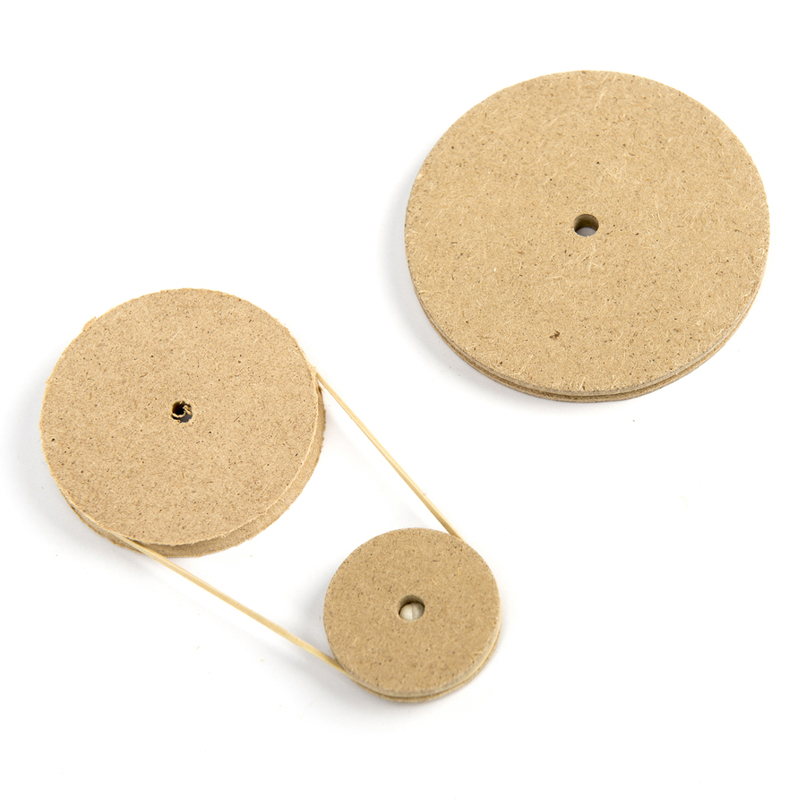 Featuring three distinct sizes - 34mm, 54mm, and 74mm diameter - these pulleys offer versatility in design and technology projects using dowels, catering to a wide range of activities.